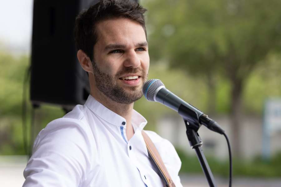 Nicht erst seit seinem Duett mit Nico Santos in der Porsche Arena in Stuttgart vor 6000 Menschen begeistert er mit seiner einzigartigen Stimme und kreativen Live-Performances mit Loop-Station und unplugged.