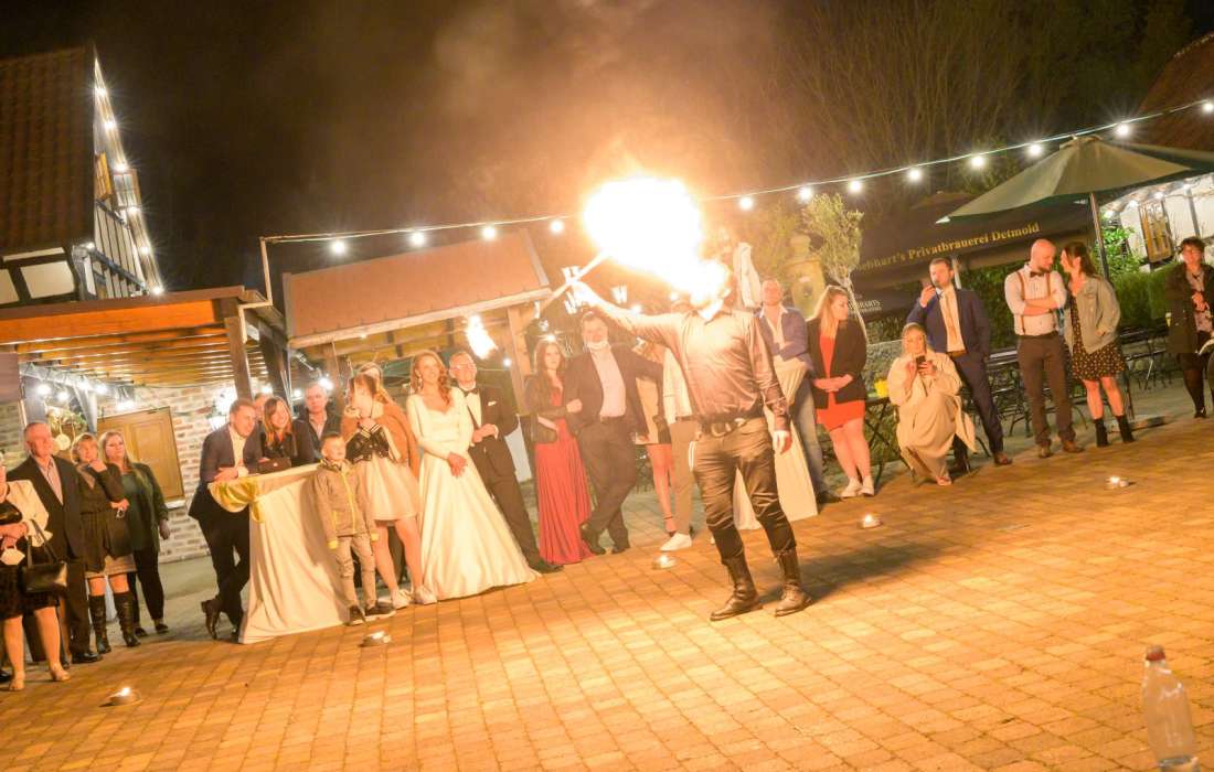 Seit inzwischen 17 Jahren bieten wir feurige Auftritte auf Hochzeiten, Firmenfeiern, Stadtfesten, Mittelaltermärkten und Weihnachtsmärkten.