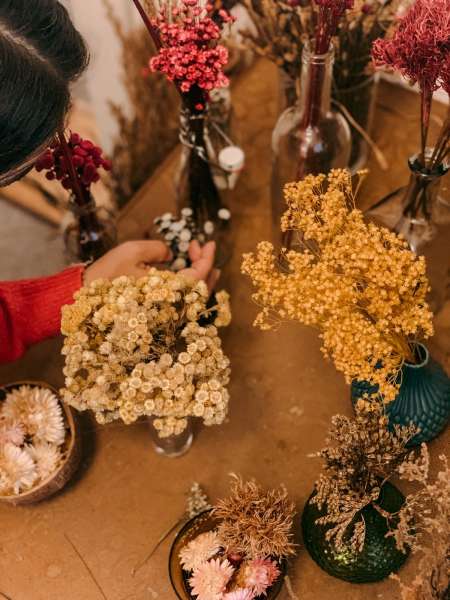 Dank unserer internen Flower Bar, kannst Du Dich in unserem Trockenblumen Sortiment richtig austoben und Deinen eigenen Stil entdecken. Hier kommt jeder auf seine Kosten!