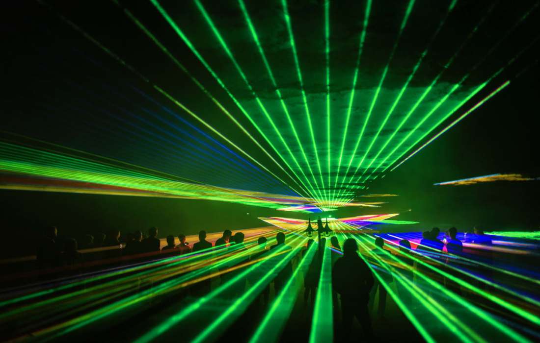Krönen Sie diesen einzigartigen Tag mit einer Lasershow, Laserkunst und Musik in vollendeter Harmonie in unserer Beamshow.