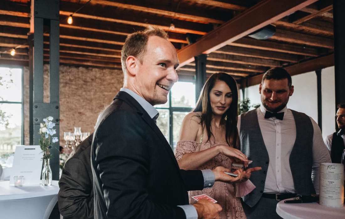 Comedy, Zauberkunst und die perfekte Illusion in einem. In der Show wird das Publikum mit einbezogen, der ein oder andere Gast nach vorne geholt und beste Unerhaltung dargeboten. Das schafft gemeinsame Erinnerung, neuen Gesprächsstoff und auch spät am Abend werden Ihre Gäste noch über den ein oder anderen Trick sich ihren Kopf zerbrechen.